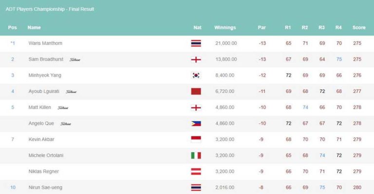 Heute darf ich mich mit meinem dritten Top-10 Ergebnis auf der Asian Development Tour bei euch melden. Mit 66-70-71-72 und gesamt 279 Schlägen konnte ich den geteilten siebenten Platz erreichen. Diese Woche habe ich wieder einiges erlebt und vor allem am Ende wirklich gut gekämpft, doch der Reihe nach.