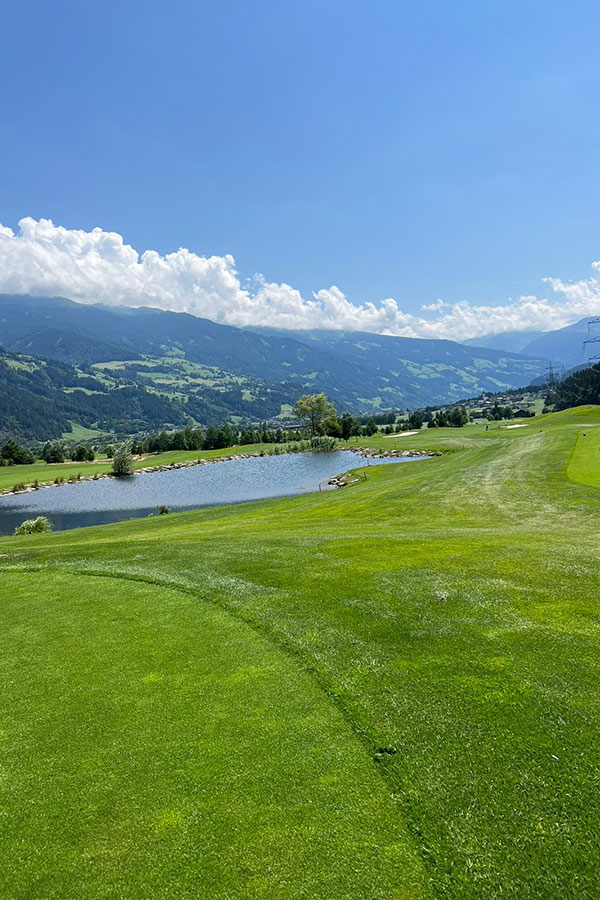 Das Wochenende habe ich für ein paar Besuche genutzt: Am Samstag ging es zuerst zu meiner Schwester Elisa am Wolfgangsee. Elisa arbeitet dort in der Küche eines Restaurants und hat sich ebenso über meinen Besuch gefreut, wie dann am späteren Nachmittag mein Freund Paul Kamml, den ich in Salzburg erwischt habe. Am Montag ging es für mich dann weiter ins Zillertal und dort stand eine Runde mit Alexander Kopp am Programm – diesen Platz wollte ich mir schon immer einmal anschauen und er hat mich echt beeindruckt. Super Pflegezustand, sehr gut zu spielen und vor allem auch für Touristen eine sehr feine Anlage. Dazu ein grandioses Clubhaus und tolles Restaurant – diesen Platz kann ich nur empfehlen.