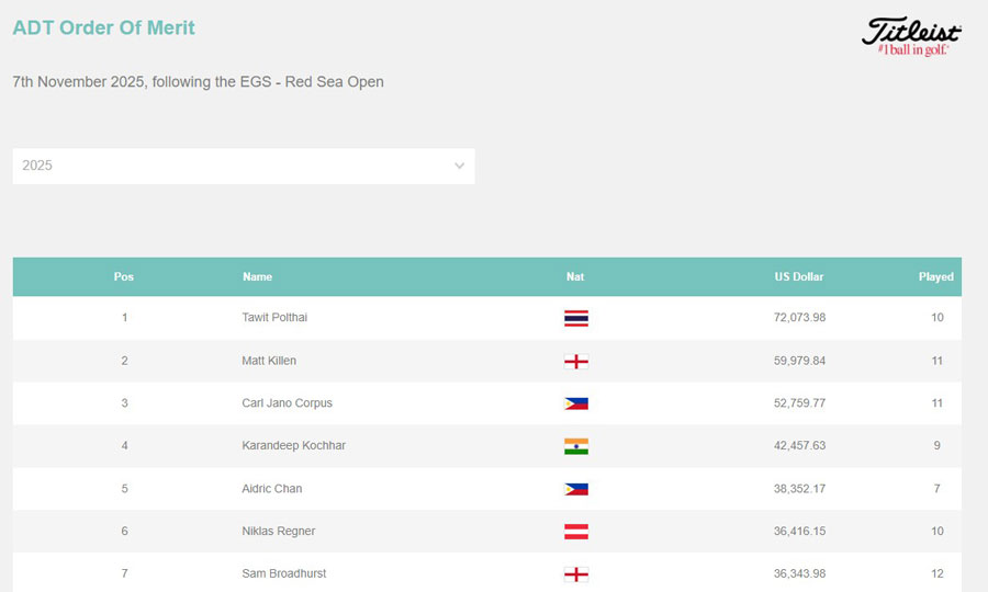 Die beiden finalen Runden habe ich dann mit 71 und 69 Schlägen absolviert und zweimal habe ich leider mit dem Putten gehadert. Wie bereits einleitend gesagt, der Golfplatz in Sokhna ist durchaus nett und gut zu spielen, nur leider waren die Greens in keinem guten Zustand. Die Bälle sind im letzten Moment weggesprungen, haben die Linie nicht gehalten und damit bin ich diese Woche einfach nicht zurechtgekommen. Mit meinem geteilten 24. Platz ist aber nichts passiert, ich konnte meinen „Platz an der Sonne“ halten. Damit meine ich meinen sechsten Platz in der Order of Merit, der eine Karte für die Asian Tour 2026 bedeuten würden. Grundsätzlich lasse ich mich von der guten Ausgangsposition nicht täuschen, ist das letzte Turnier, das Aramco Invitational Tournament im Rolling Hills Golf Club in Saudi-Arabien, doch mit 250.000 Dollar dotiert und daher kann auch in der Gesamtwertung einiges passieren.